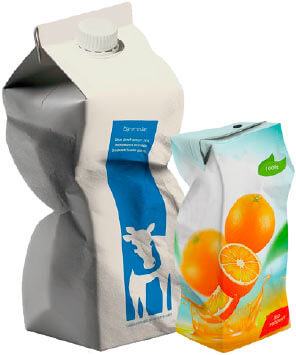 Envases tipo brik de zumos, leche, vino, batidos, caldos, gazpacho, etc.
