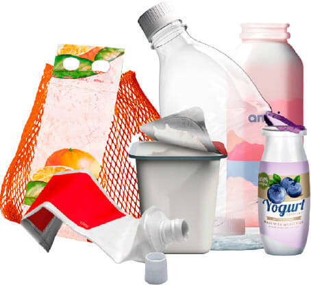 Botellas de agua, refrescos y leche. Envases de productos de limpieza. Geles de baño, colonia y champú. Bolsas de congelados. Tarrinas de mantequilla y envases de yogur.